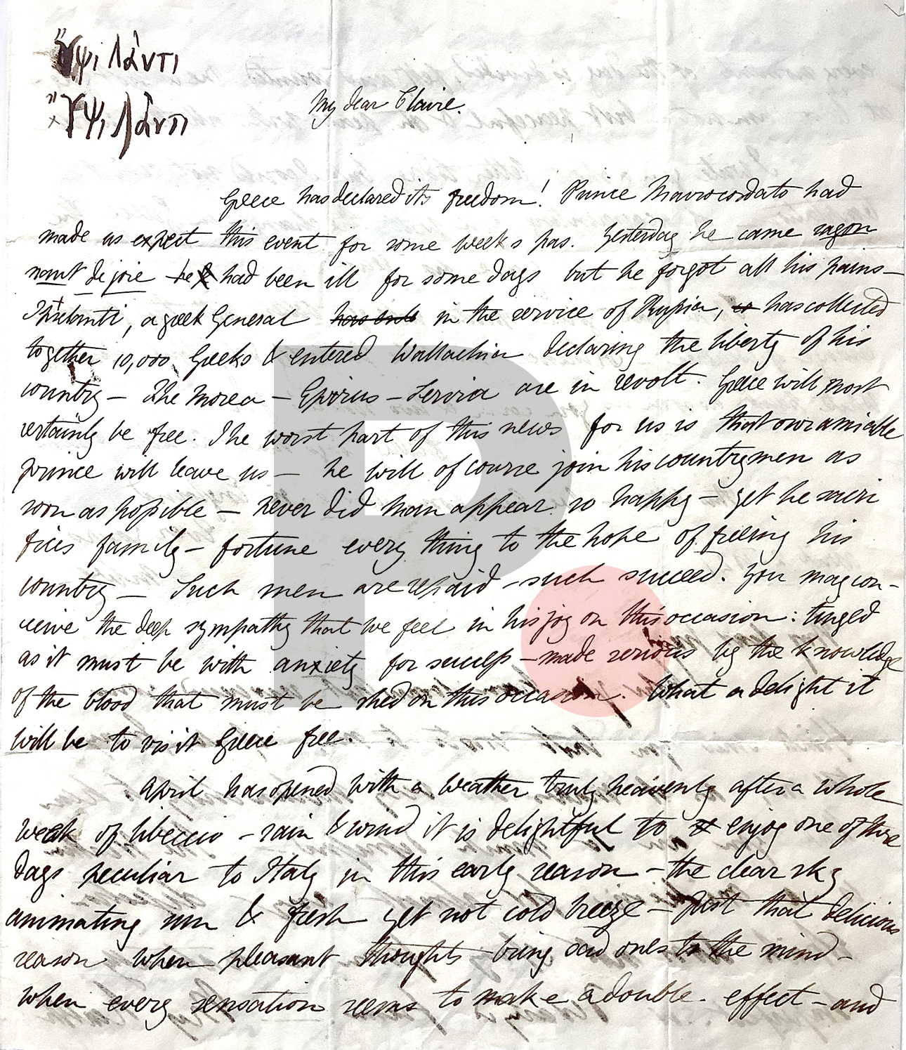 Αυτή η εικόνα οφείλει πολλά στον Αλέξανδρο Μαυροκορδάτο που από την πρώτη στιγμή, από την άνοιξη του 1821, φροντίζει να παρουσιαστεί η Ελληνική Επανάσταση στον βρετανικό και τον γαλλικό Τύπο (με τη βοήθεια του Πέρσι και της Μαίρης Σέλεϊ) ως η «σύγκρουση του Σταυρού με την Ημισέληνο».