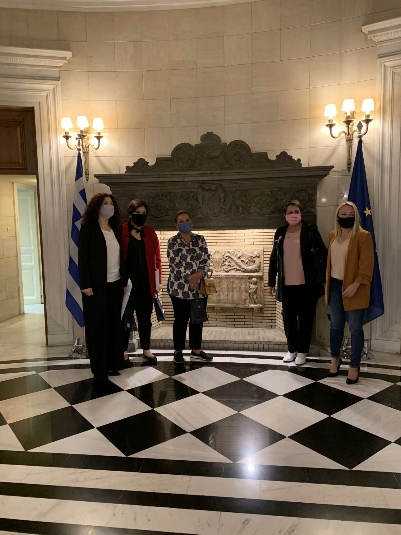 Στοπ! Δεν λέγονται όλα με τη μία! Είναι τόσο, μα τόσο πολλά αυτά που μας ενώνουν, που με ενώνουν με ετούτη τη «ράτσα» γυναίκες!… Aλλωστε, σε ελάχιστο χρόνο, ίσα που να χαρούμε γέλιο μεταξύ μας, πόσο εύκολα γελάμε αυτές οι γυναίκες!.. Μια νεαρή κοπέλα μας συνοδεύει στο γραφείο του Πρωθυπουργού. Του Κυριάκου Μητσοτάκη. Ψηλός, πολύ ψηλός, αδύνατος, με την ευγενική άνεση ενός οικοδεσπότη που γνωρίζει πώς πρέπει να συμπεριφερθεί για να μεταδώσει αμέσως ζεστασιά, οικειότητα. «Να και η Παναγία του Παρθένη» πίσω από το γραφείο του. «Πού είναι ο Μόραλης;» περιστρέφω το κεφάλι μου, να και ο μεγάλος μπλε πίνακας του Αδαμάκη. Να και πολλές κορνίζες. Ισα που προλαβαίνω μια Μαρέβα να του χαμογελάει, ό,τι προλαβαίνει δηλαδή η ματιά μου μέχρι να καθίσουμε τηρώντας τα σωστά μέτρα αποστάσεων.