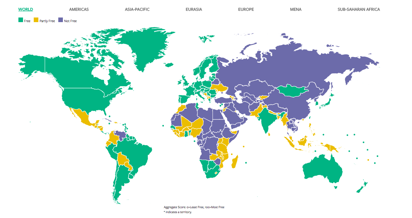 Ο «Οίκος Ελευθερίας» είναι μια Μη-Κυβερνητική Οργάνωση που ιδρύθηκε τον Β’ Παγκόσμιο Πόλεμο από την πολιτικό και ακτιβίστρια Ελινορ Ρούσβελτ, ευρύτερα γνωστή ως σύζυγο του προέδρου Ρούσβελτ. Από το 1972, η οργάνωση εκδίδει κάθε χρόνο την αναφορά «Ελευθερία στον Κόσμο», όπου κατατάσσει τις χώρες του πλανήτη σε τρεις κατηγορίες: «Ελεύθερη», «Μερικώς Ελεύθερη», και «Μη Ελεύθερη». Αυτή η αξιολόγηση προσμετρά τη λειτουργία του κράτος δικαίου, την ποιότητα της Δικαιοσύνης, τη διάκριση των εξουσιών, την ελευθερία της έκφρασης και των ΜΜΕ, τους ελέγχους στην κρατική αυθαιρεσία, και άλλους παράγοντες που δίνουν νόημα στην έννοια «ελευθερία». Ενδεικτικά, στην κατάταξη για το 2017, που μόλις δημοσιεύθηκε, η Νορβηγία και η Σουηδία είναι στην κορυφή, ενώ η Βόρεια Κορέα και η Συρία στο βυθό. H χώρα μας είναι στα χαμηλά της ανώτερης κατηγορίας: «Ελεύθερη», στο παρά κάτι.
