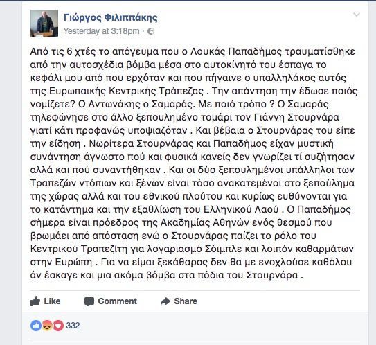 – Την Πέμπτη το απόγευμα έσκασε το τρομο-δέμα στα χέρια του πρώην Πρωθυπουργού Λουκά Παπαδήμου.