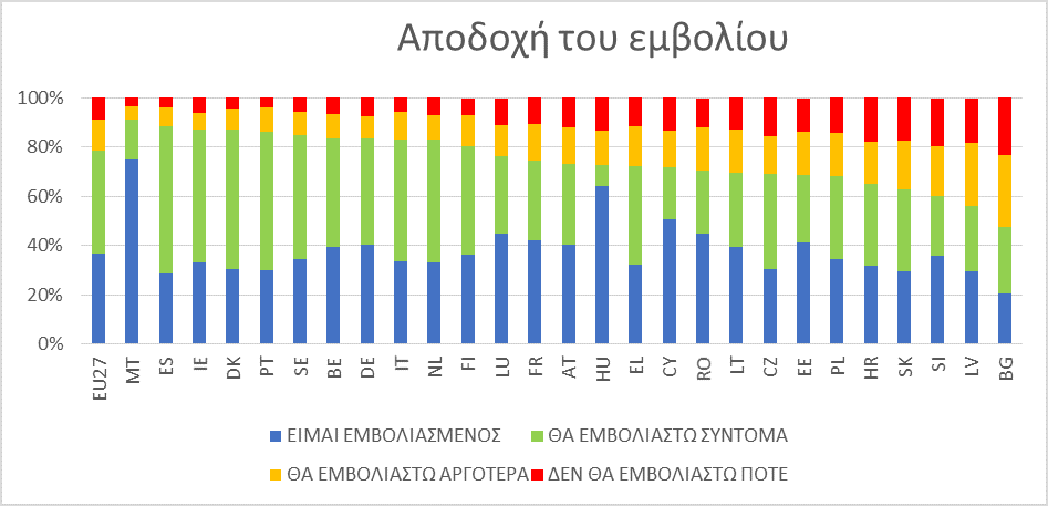 Μεταξύ Φεβρουαρίου και Μαΐου δεν είχαμε ουσιαστική διαφοροποίηση όσον αφορά την άρνηση του εμβολιασμού. Υπήρξε μικρή μείωση της άρνησης σε ευρωπαϊκό επίπεδο της τάξεως του 3%. Οι παρασχεθείσες πληροφορίες δεν βοήθησαν πραγματικά στο να πειστούν οι αρνητές. Ωστόσο, ορισμένες χώρες παρουσίασαν δραστική μείωση, όπως η Κύπρος (-13%), η Γαλλία (-11%) ή η Αυστρία (-6%). Όλες οι άλλες χώρες παρέμειναν σταθερές. Ο μαζικός εμβολιασμός δεν είχε σημαντικό αντίκτυπο στους πολίτες που αρνούνται να εμβολιαστούν. Η απόφασή τους βασίζεται πιθανώς σε πεποιθήσεις που η λογική δεν μπορεί να αντικρούσει.
