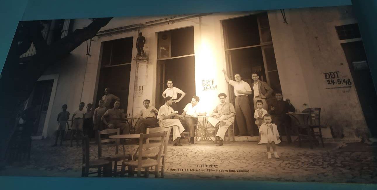 Σήμερα, ύστερα από 17 χρόνια και τρεις ανακαινίσεις, το μαγαζί είναι σημείο αναφοράς για τον τόπο. Δεν θέλαμε να κάνουμε ένα καφενείο όπως όλα τα άλλα. Συνταιριάξαμε την ιστορία με τη νεωτερικότητα. Εχουμε κρατήσει κομμάτια από την παλαιά επίπλωση, όπως οι δερμάτινοι καναπέδες και οι καρέκλες. Ο μαυροπίνακας είναι κειμήλιο από το σχολείο. Η ασπρόμαυρη φωτογραφία του παρελθόντος, που είδατε σε τοίχο του καφενείου, παρουσιάζει ενδιαφέρον γιατί κάποια από τα πρόσωπα που απεικονίζονται ζουν ακόμη, τα αναγνωρίζουμε! Από την άλλη, διακρίνονται στην πρόσοψη του καφενείου οι ημερομηνίες απολυμάνσεων-απεντομώσεων που γίνονταν, για την αποφυγή ασθενειών.