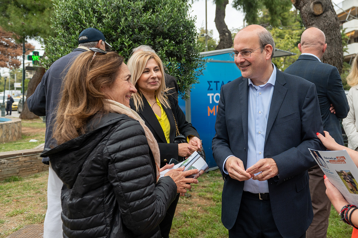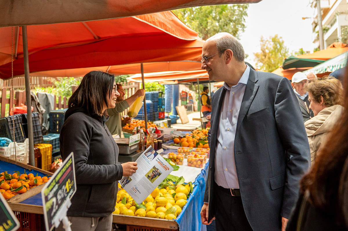 Λαϊκή αγορά. Ο παλμός κάθε περιοχής. Εκεί, στην Πεύκη, συναντώ γιαγιάδες που μαλώνουν με τους άνδρες τους γιατί περπατούν αργά, λαχαναγορίτες που έχουν καταπιεί ποιητές και… τον Κωστή Χατζηδάκη. «Τι πιο σύνηθες» θα σκεφτεί κάποιος, «προεκλογική περίοδος». Λίγο ριψοκίνδυνο, θα έλεγα εγώ. Τώρα είναι η εποχή που η οργή του αντιεξουσιαστή εκτινάσσεται στα ύψη. Σε αυτό φάνηκε να συμφωνούν και οι σύμβουλοι του υπουργού Eργασίας, που τον οδήγησαν από την άλλη πλευρά του δρόμου. Εκείνος, όμως, έστριψε και μπήκε μέσα στον κόσμο: «Μια καλημέρα θέλω να πω και ας ψηφίσουν ό,τι νομίζουν», είπε.