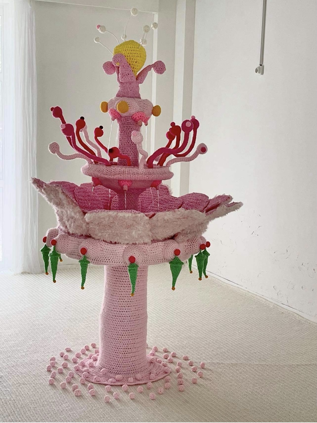 Πότε εκείνο το πλεκτό δωμάτιο, σας ορκίζομαι μέχρι και όλο το πάτωμα, όπως εκείνες οι χειροτεχνίες ανθρώπων που δεν έχουν χρόνο γιατί έχουν όλον τον χρόνο δικό τους… Πρέπει να επισκεφτείτε το πλεκτό δωμάτιο της Βάνας Ντατσούλη με τίτλο «Οταν σ’ αγαπώ» (κι εγώ!), βγάζοντας τα παπούτσια σας, ένα ροζ καταρόζ όλων των φύλων μιας παιδικότητας αιώνιας, που μέσα από θηλές τρέχει νερό, πες το και γαλατόνερο και η ντουλάπα με τα κρυμμένα της. Και σε άλλο σημείο, οι γραμμές του τρένου ως ένα αιώνιο, επιτακτικό «να φύγω» της Αντας Πετρανάκη.