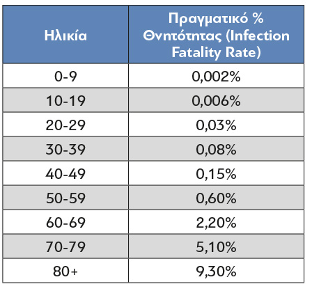 Πίνακας 4: Πραγματική θνητότητα του Covid 19 σύμφωνα με τη μελέτη του Imperial College.