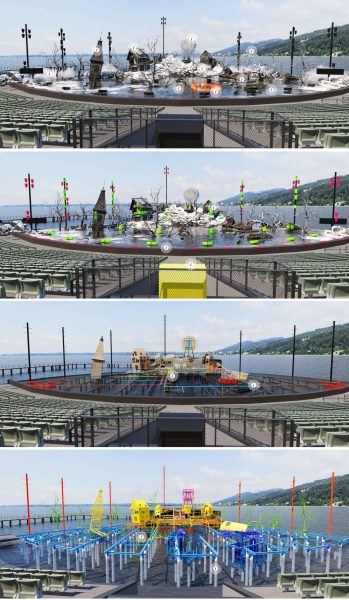 Η λίμνη δεν λειτουργεί απλά ως διακοσμητικό σκηνικό για «γραφικές» σκηνοθεσίες. Αυτή συμμετέχει δυναμικά στις παραστάσεις και σημαδεύει αισθησιακά τις καλλιτεχνικές αναμνήσεις των θεατών. Το υγρό φυσικό τοπίο, μαζί με τα πουλιά και τις μεταβολές του καιρού και του φωτός – ιδίως του ηλιοβασιλέματος – συμπεριλαμβάνεται πάντα στις νέες σκηνοθεσίες ως οργανικό στοιχείο της κάθε όπερας, η οποία και προσαρμόζει την δράση της ιστορίας της σε αυτό.