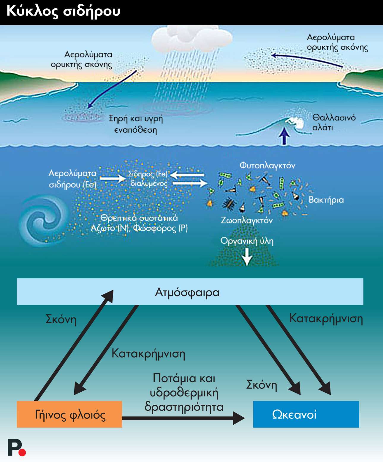 Λοιπόν, ο σίδηρος είναι το πιο άφθονο ιχνοστοιχείο σε θαλάσσιους και χερσαίους οργανισμούς, αναγκαίος για τον σχηματισμό μεταλλοενζύμων που αποτελούν βασικούς παράγοντες σε πολλές διαδικασίες της ζωής, μεταξύ των οποίων και στη φωτοσύνθεση, καθώς παίζει σημαντικό ρόλο στον σχηματισμό της χλωροφύλλης, και γενικότερα στην ανάπτυξη των φυτών. Ο σίδηρος συμβάλλει ουσιαστικά στην οξυγόνωση των οργανισμών και την ανάπτυξή τους, πράγμα που ισχύει και για το ανθρώπινο σώμα, καθώς αποτελεί βασικό συστατικό της αιμοσφαιρίνης, που μεταφέρει το οξυγόνο σε όλο το σώμα.
