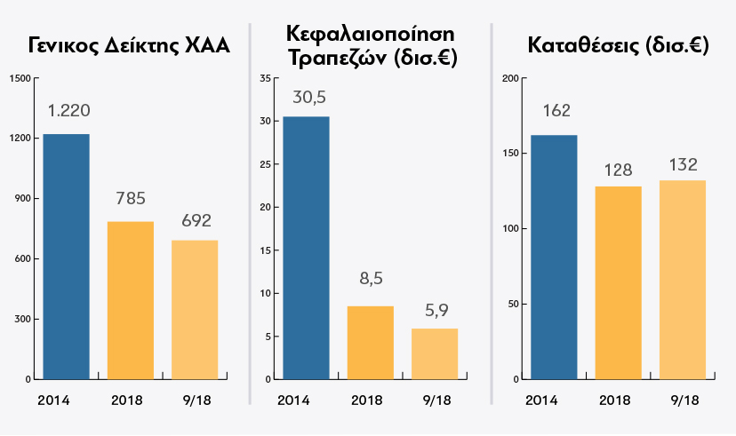 3Τα στοιχεία για τις καταθέσεις αφορούν το μέσο όρο οκταμήνου 2014 & 2018 καθώς και την τιμή στο τέλος του Αυγούστου 2018.