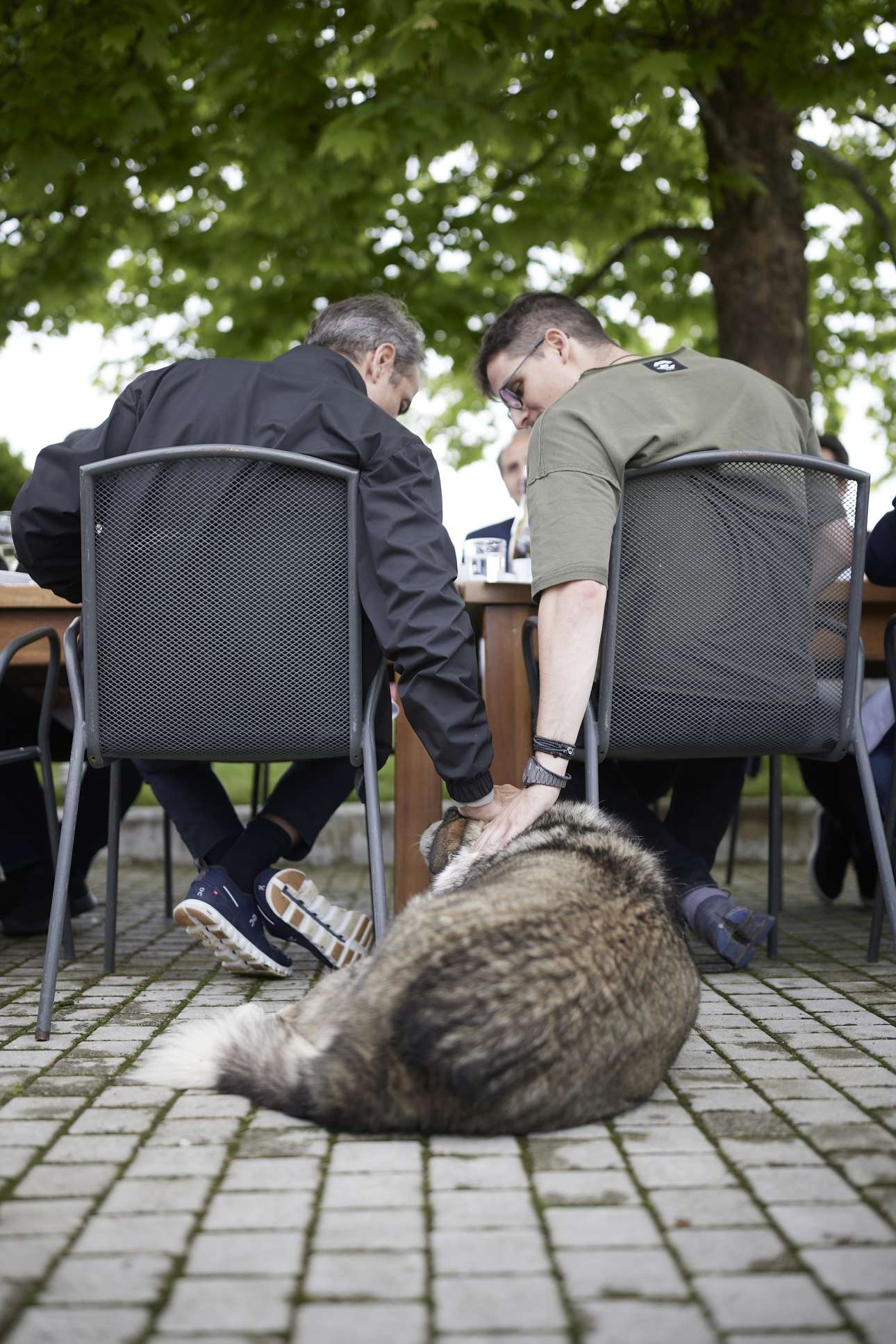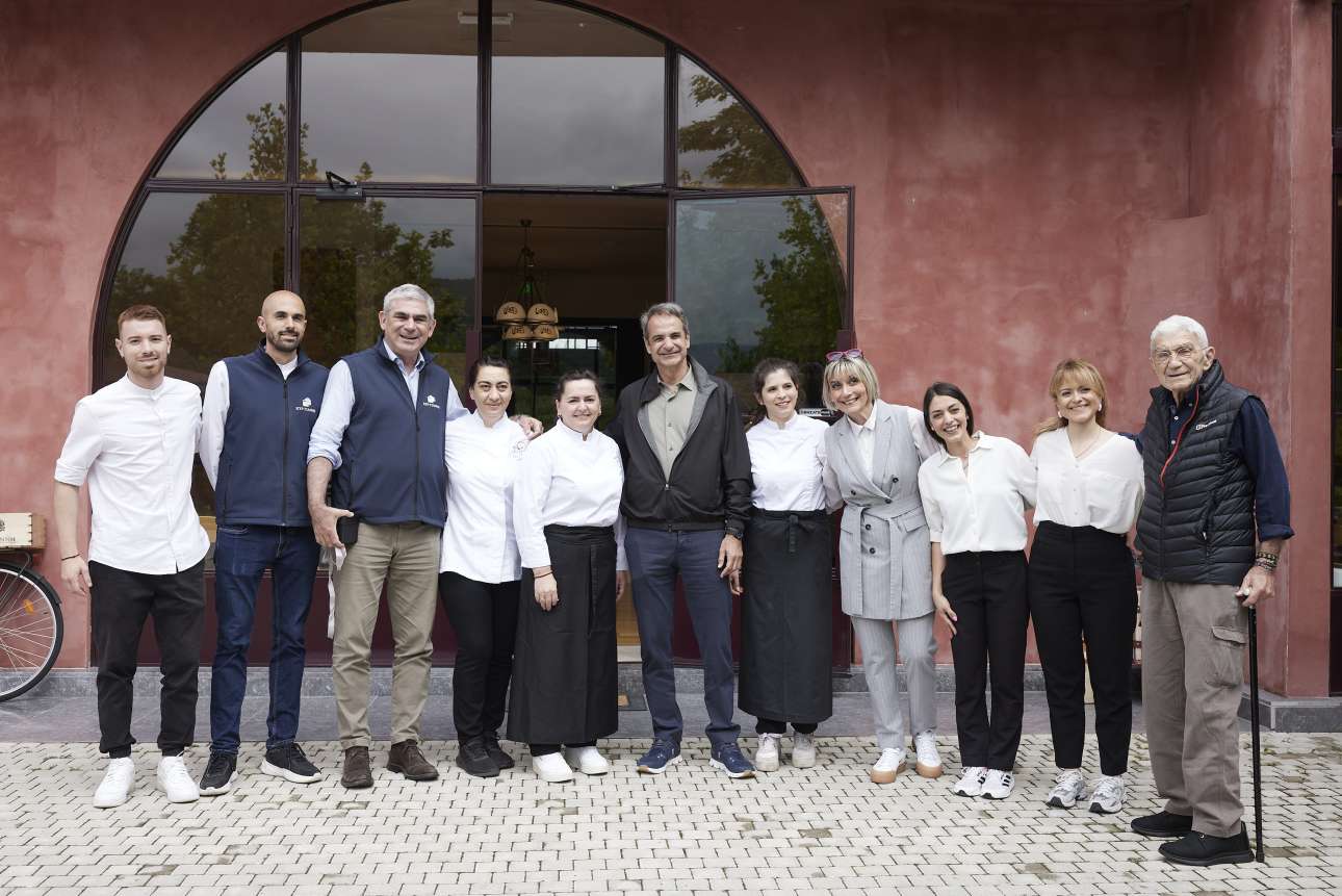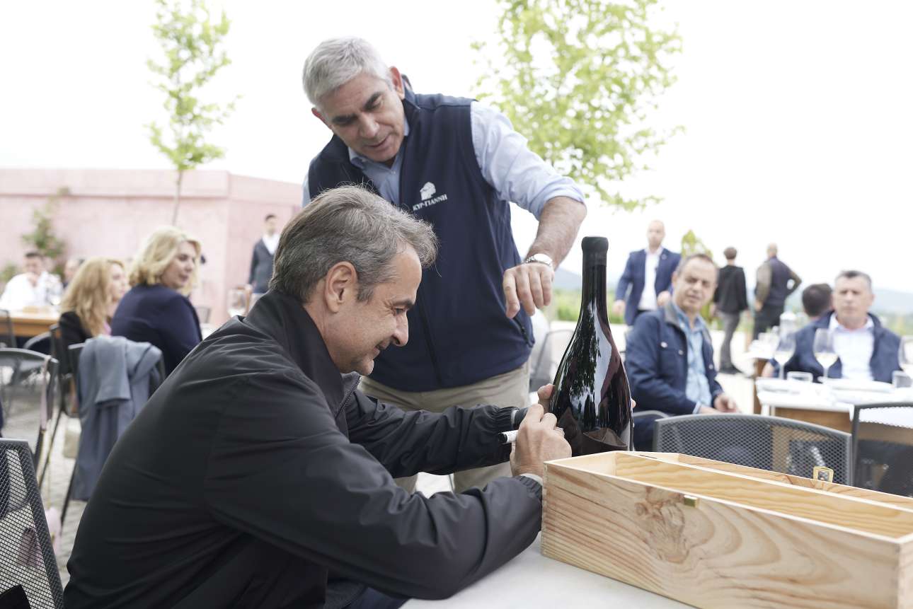 Στη συνέχεια οι Γιάννης και Στέλιος Μπουτάρης παρέθεσαν γεύμα στον Κυριάκο Μητσοτάκη και σε ολόκληρη την αποστολή που τον συνόδευε, κοντά στα αμπέλια.