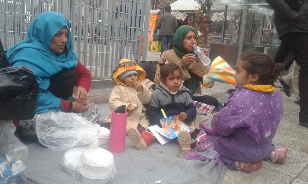 Μια ακόμα οικογένεια από το Αφγανιστάν μέσα στις δεκάδες άλλες που έχουν εγκατασταθεί εδώ και καιρό στην πλατεία. Μερικοί από τους χιλιάδες ανθρώπους που πέρασαν από τη θάλασσα της Μεσογείου και έφτασαν σε μια χώρα που τους είπαν ότι λέγεται «Ελλάδα». Οι περισσότεροι αναμένουν τη μέρα που θα μπουν σε ένα λεωφορείο ή κάποιο τρένο, θα περάσουν τα βόρεια σύνορα της χώρας και θα φτάσουν σε μια δικιά τους γη της επαγγελίας. Αν τους ρωτήσεις θα ψελλίσουν λέξεις όπως «Γερμανία», «Σουηδία».