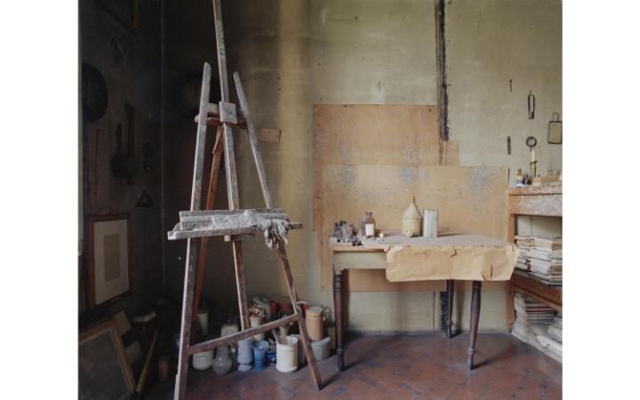 Τα ωχρά χρώματα που κυριαρχούν στα έργα του μεγάλου ιταλού ζωγράφου, όχι κατά τύχη, χαρακτηρίζουν και το ατελιέ του (φωτογραφία κάτω). Ετσι ήταν το εργαστήρι του Τζόρτζιο Μοράντι, στη γενέτειρά του Μπολόνια, όπως το φωτογράφισε ο Λουίτζι Γκίρι . Το σίγουρο είναι ότι τα περισσότερα από αυτά τα αντικείμενα, ο ιταλός καλλιτέχνης τα είχε αποτυπώσει σε σχέδιά του.