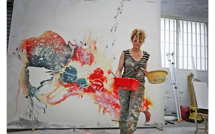Η 37χρονη γαλλίδα καλλιτέχνιδα, Μαρλέν Μακέ, έχει δηλώσει ότι άρχισε να ζωγραφίζει από τα 14 της, «όταν τα λόγια δεν έφταναν για να εκφραστεί». Τα έργα της δείχνουν ότι έχει βρει το κατάλληλο μέσο για να εκφράσει έναν κόσμο όπου οι μορφές αλλάζουν σχήματα και χρώματα διαρκώς. Στο ατελιέ της, όπως φαίνεται και στη φωτογραφία (κάτω) που έβγαλε η Μαρί Πολ Νεγκρ, είναι και η ίδια βουτηγμένη στα χρώματα.