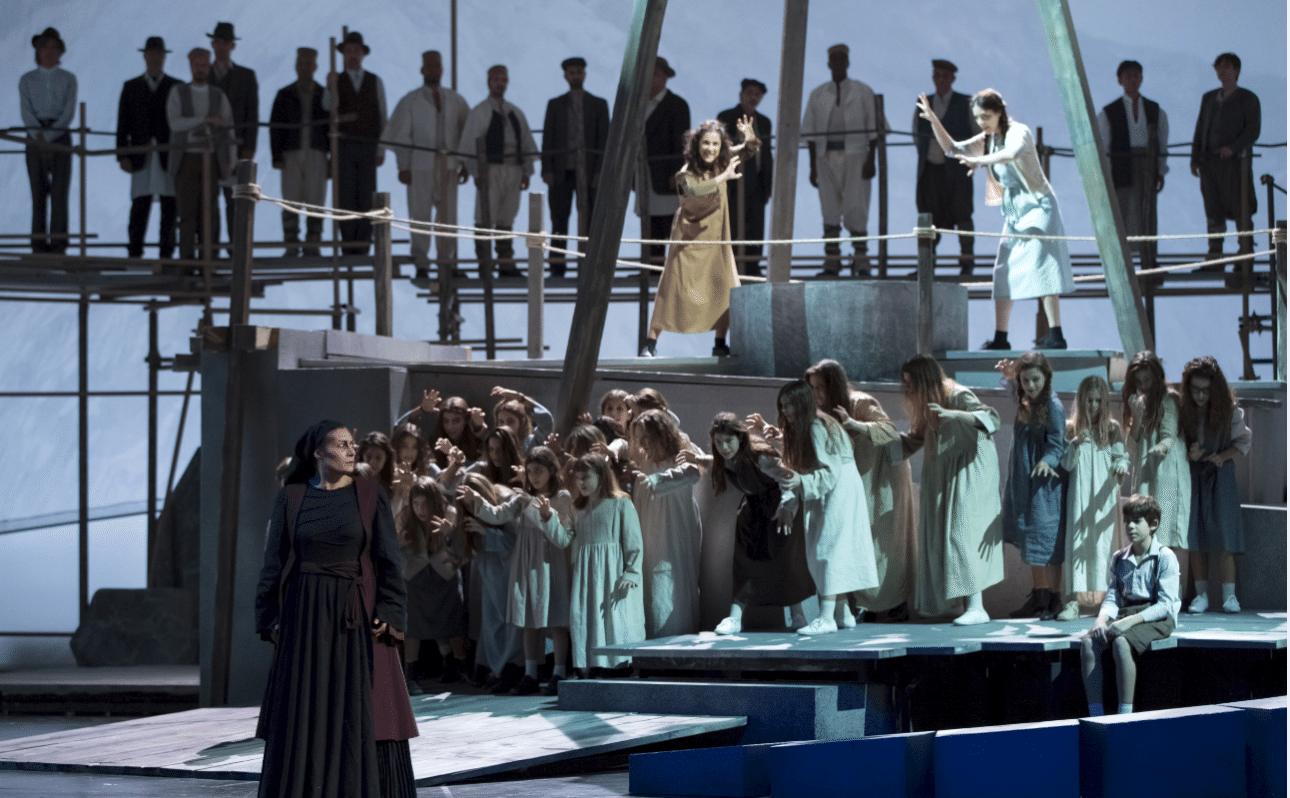 Και ακούγοντας τον όγκο των φωνών της χορωδίας χωρίς να τη βλέπουμε, ένα κύμα ανατριχίλας διαπερνούσε τους θεατές από τις πρώτες σειρές ως τα θεωρεία.