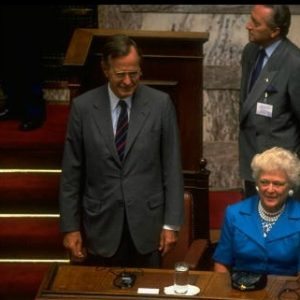 Από το 1959 θα έπρεπε να μεσολαβήσουν 32 ολόκληρα χρόνια, μια χούντα και άλλοι έξι ηγέτες των ΗΠΑ (Τζον Κένεντι, Λίντον Τζόνσον, Ρίτσαρντ Νίξον, Τζέραλντ Φορντ, Τζίμι Κάρτερ και Ρόναλντ Ρίγκαν), μέχρι να ξαναέρθει στη χώρα μας ένας αμερικανός πρόεδρος. Ηταν καλοκαίρι του 1991, το τριήμερο 18 – 20 Ιουλίου, όταν την Αθήνα επισκέφτηκε ο Τζορτζ Μπους ο πρεσβύτερος. Τον είχε υποδεχτεί ως Πρόεδρος της Δημοκρατίας ο Κωνσταντίνος Καραμανλής ενώ Πρωθυπουργός ήταν ο Κωνσταντίνος Μητσοτάκης. Ο 41oς πρόεδρος των ΗΠΑ είχε μιλήσει στο κοινοβούλιο και είχε επισκεφτεί τη βάση της Σούδας.