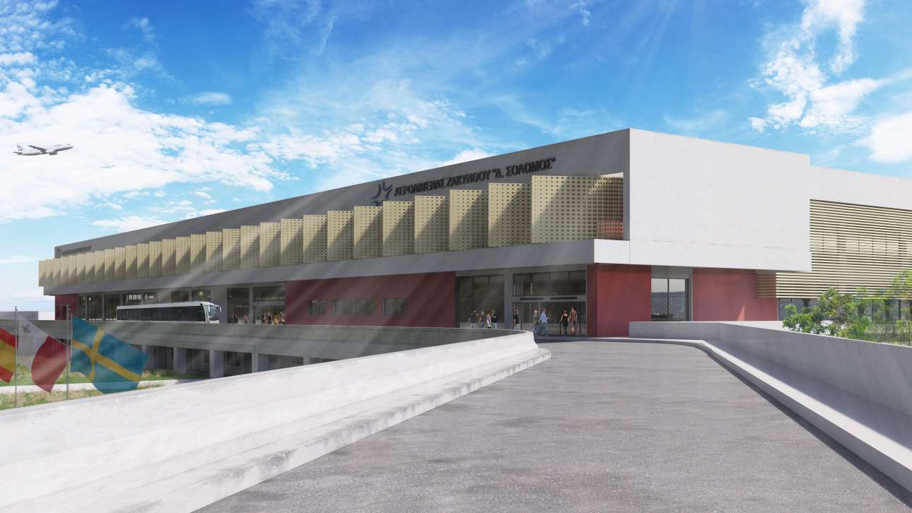 Εξωτερική άποψη του αεροδρομίου της Ζακύνθου, το οποίο δέχεται μεγάλο όγκο πτήσεων τσάρτερ κάθε καλοκαιρινή περίοδο
