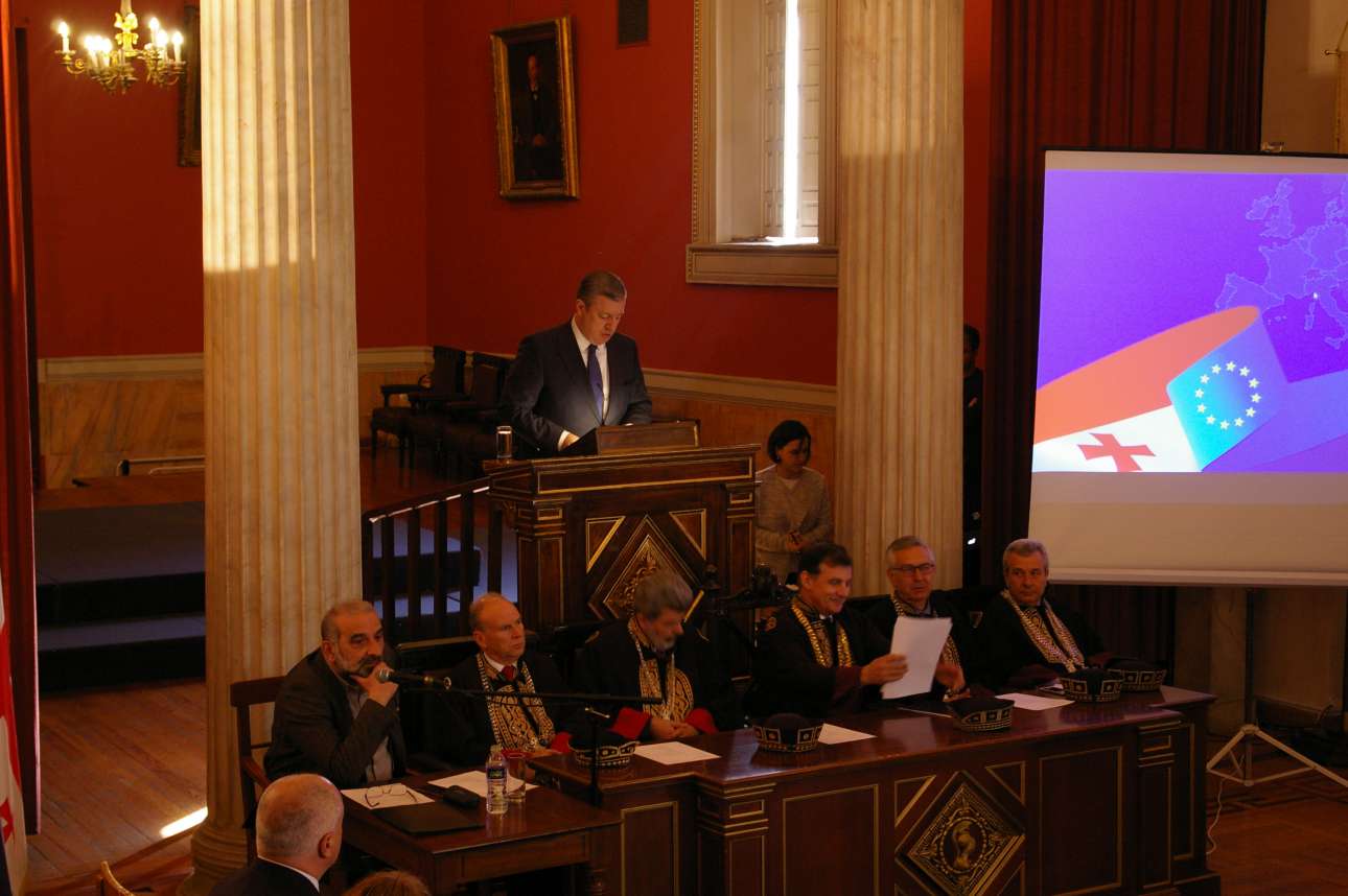 Η Τρίτη, 28η Μαρτίου, ήταν λαμπρή ημέρα για τη Γεωργία που διεκδικούσε την κατάργηση της θεώρησης (βίζα) από το 2012. Τώρα πια, οι πολίτες της μπορούν να ταξιδεύουν ελεύθερα σε 26 κράτη και να ανοιχτούν σε νέους ορίζοντες – με όριο διαμονής τις 90 ημέρες. Η γεωργιανή κυβέρνηση αποφάσισε, στη συμβολική περιοδεία της, να κάνει μία στάση πρώτα την Αθήνα κι ύστερα τις Βρυξέλλες. Και σύσσωμη η αποστολή επισκέφθηκε, πριν από το Μέγαρο Μαξίμου, το Εθνικό Καποδιστριακό Πανεπιστήμιο Αθηνών.