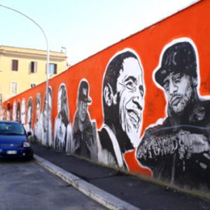 Γι’ αυτό η ενότητα η σχετική με την ιστορία των γκράφιτι στην Ιταλία είναι και η πιο ενδιαφέρουσα. Εδώ ήταν που το 1979 η γκαλερί Medusa τόλμησε να παρουσιάσει την πρώτη σχετική έκθεση εκτός Αμερικής, τοποθετώντας την πόλη στο προσκήνιο του κινήματος και ανάγοντάς την σε «πρωτεύουσα του συνθήματος». Βλέπουμε σπάνια, χαμένα επί τεσσαρακονταετίας, έργα των αμερικανών βετεράνων Lee Quinones και Fab 5 Freddy, που ανοίγουν παράθυρο στην τότε επικαιρότητα (όχι τόσο διαφορετικής από το σήμερα), καθώς και ένα αφιέρωμα στα καλυμμένα από σπρέι τρένα της Ρώμης, μοναδικής πόλης στον κόσμο όπου δεν σβήνονται τα γκράφιτι, αλλά διατηρούνται για είκοσι, τριάντα χρόνια ως μαρτυρία εποχής.