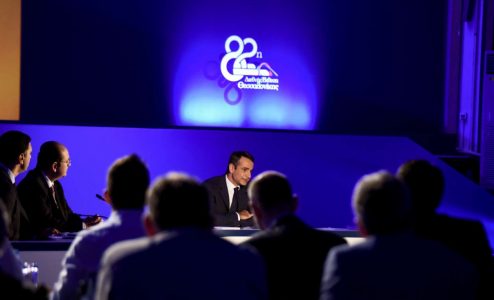 Ο Μητσοτάκης κοιτάζοντας με την ίδια άνεση και δεξιά και αριστερά