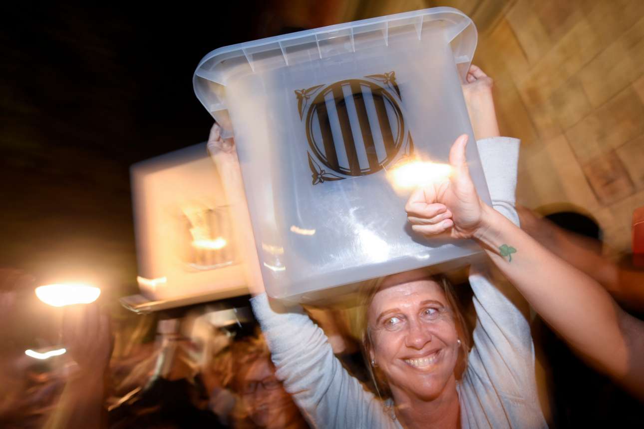 Με την κάλπη στα χέρια πανηγυρίζει μετά το δημοψήφισμα η γυναίκα (REUTERS/Eloy Alonso)
