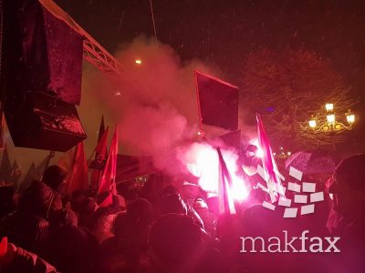 Παρά τις κακές καιρικές συνθήκες, 3.000-5.000 άνθρωποι έκαναν πορεία από τα γραφεία της ΕΕ στα Σκόπια και κατέληξαν μπροστά από την Βουλή της ΠΓΔΜ.