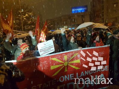 Επίσης, οι διαδηλωτές τάχθηκαν κατά της Συμφωνίας Φιλίας της ΠΓΔΜ με την Βουλγαρία, την οποία οι πρωθυπουργοί των δύο χωρών υπέγραψαν στα Σκόπια τον περασμένο Αύγουστο, όπως και κατά του νομοσχεδίου για τη διεύρυνση της χρήσης της αλβανικής γλώσσας στη χώρα.