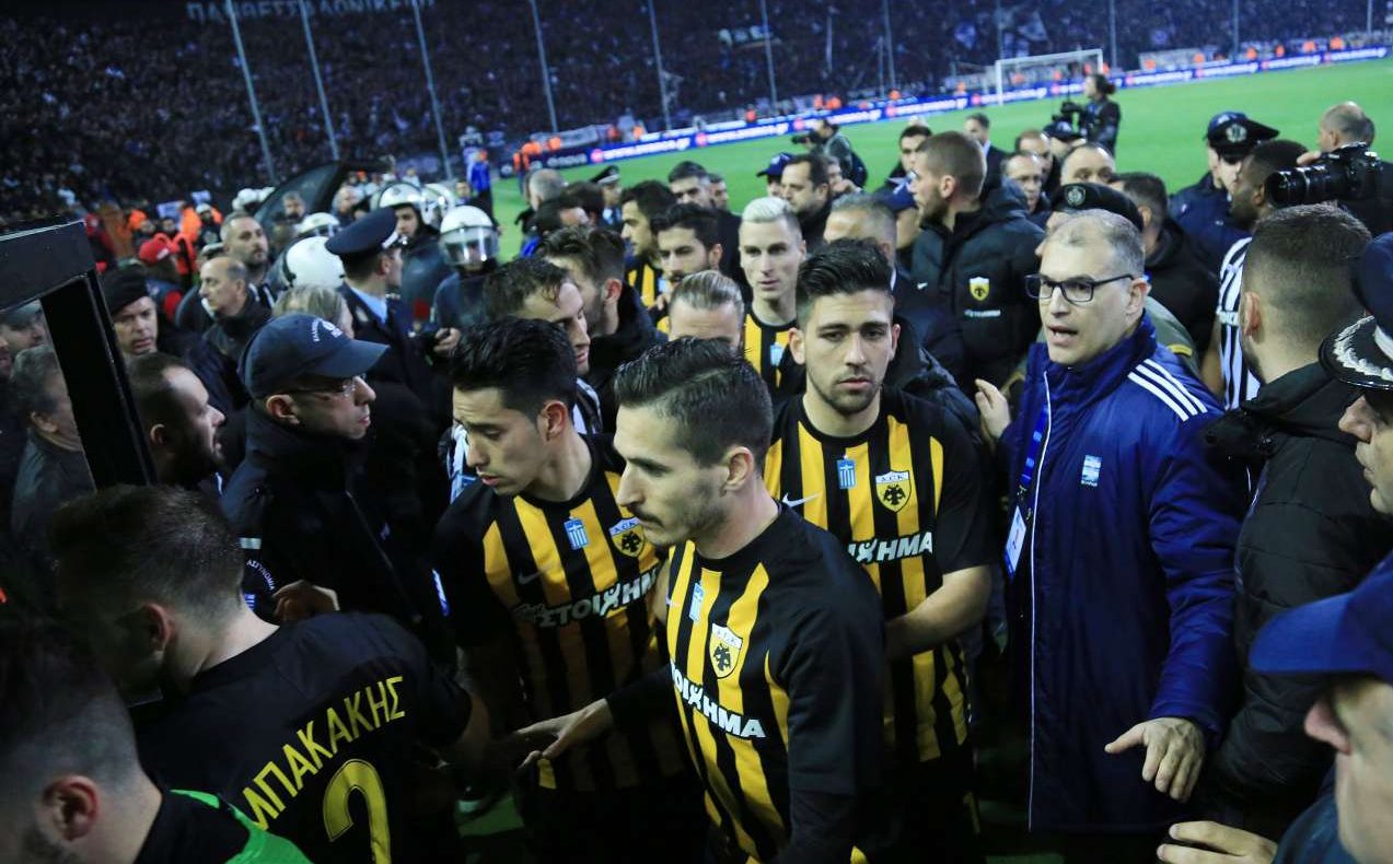 Κάποιος έγραψε ότι «ελληνικό πρωτάθλημα είναι η διοργάνωση που το ένα ντέρμπι δεν αρχίζει και το άλλο δεν τελειώνει» και είχε απόλυτο δίκιο. Ο ΠΑΟΚ που τόσο αγώνα έκανε για να ακυρωθεί η τιμωρία του για τη μη διεξαγωγή του ντέρμπι με τον Ολυμπιακό -λόγω του τραυματισμού του προπονητή Οσκαρ Γκαρθία- στις 25 Φεβρουαρίου και να γίνει κανονικά το ντέρμπι με την ΑΕΚ, είδε το αφεντικό του, τον ακριβοθώρητο μεγαλοεπενδυτή Ιβάν Σαββίδη, να μπουκάρει με μπράβους στον αγωνιστικό χώρο της Τούμπας και να απαιτεί από την ομάδα του να φύγει από τον γήπεδο.