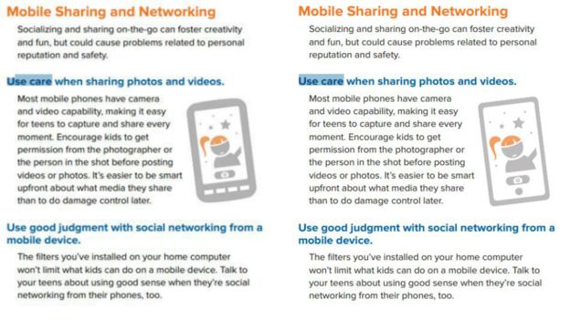 Εχει και αυτό κάποιες μάλλον κοινότοπες συμβουλές στους γονείς, «μιλήστε στους εφήβους για να αποφύγουν δικτυακές συζητήσεις για σεξ», «μιλήστε στα παιδιά σας για το μπούλινγκ» ή «ζητήστε από τα παιδιά σας να σας μιλήσουν για το μπούλινγκ που υφίστανται».