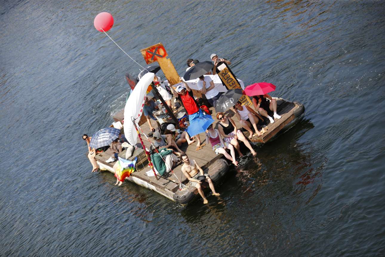 Πλεούμενα κατά της AfD, διακοσμημένα με πανό και μπαλόνια, συμμετείχαν επίσης στη συγκέντρωση, ενώ νυκτερινά κέντρα είχαν προβλέψει να πνίξουν τα συνθήματα της άκρας Δεξιάς μέσα στη μουσική τέκνο με τη βοήθεια μεγαφώνων.