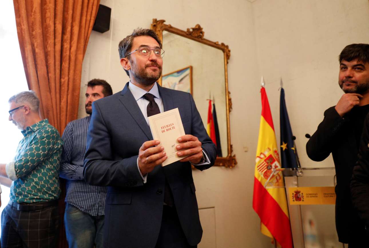 O νέος υπουργός Πολιτισμού και Αθλητισμού Μαξίμ Ουέρτα σε ένα χαρακτηριστικό στιγμιότυπο κατά την τελετή παράδοσης-παραλαβής (REUTERS/Paul Hanna)