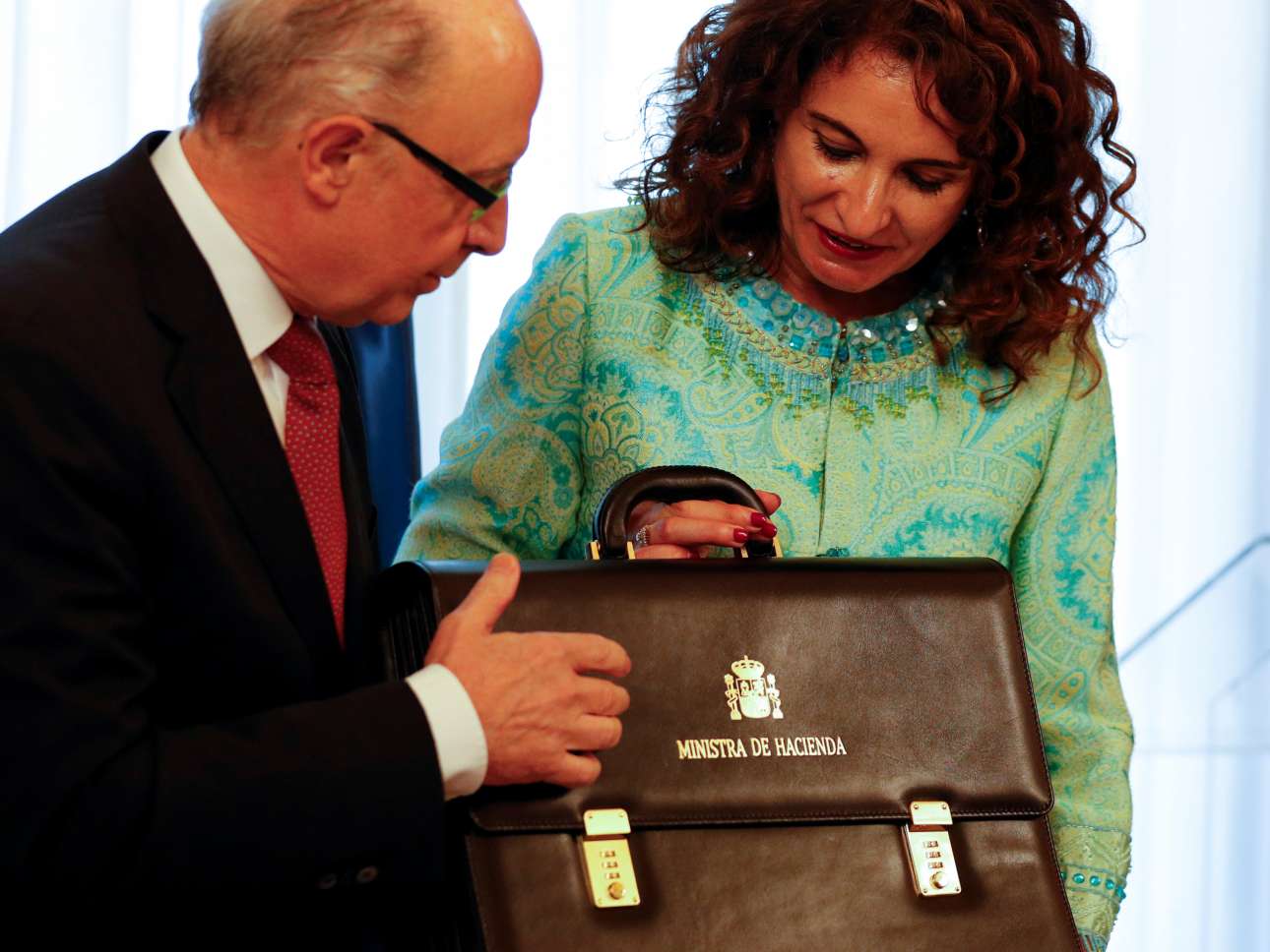 Η νέα υπουργός Δημοσίων Εσόδων Μαρία Μοντέρο παραλαμβάνει το χαρτοφυλάκιο από τον Κριστομπάλ Μοντόρο (Reuters)