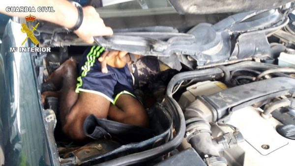 Ασυγκράτητη απελπισία: αφρικανός μετανάστης κρυμμένος μέσα στη μηχανή ενός αυτοκινήτου(!) πέρασε από το Μαρόκο στην Ισπανία τον προηγούμενο Σεπτέμβριο (EPA/SPANISH MINISTRY OF INTERIOR / HANDOUT)