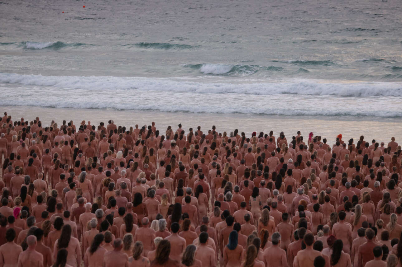 Περίπου 2.500 άνθρωποι συγκεντρώθηκαν στη διάσημη παραλία Μποντάι του Σίδνεϊ, έβγαλαν τα ρούχα τους και πόζαραν γυμνοί για τον αμερικανό φωτογράφο Σπένσερ Τιούνικ, σε μια προσπάθεια ευαισθητοποίησης της κοινής γνώμης για τον καρκίνο του δέρματος.