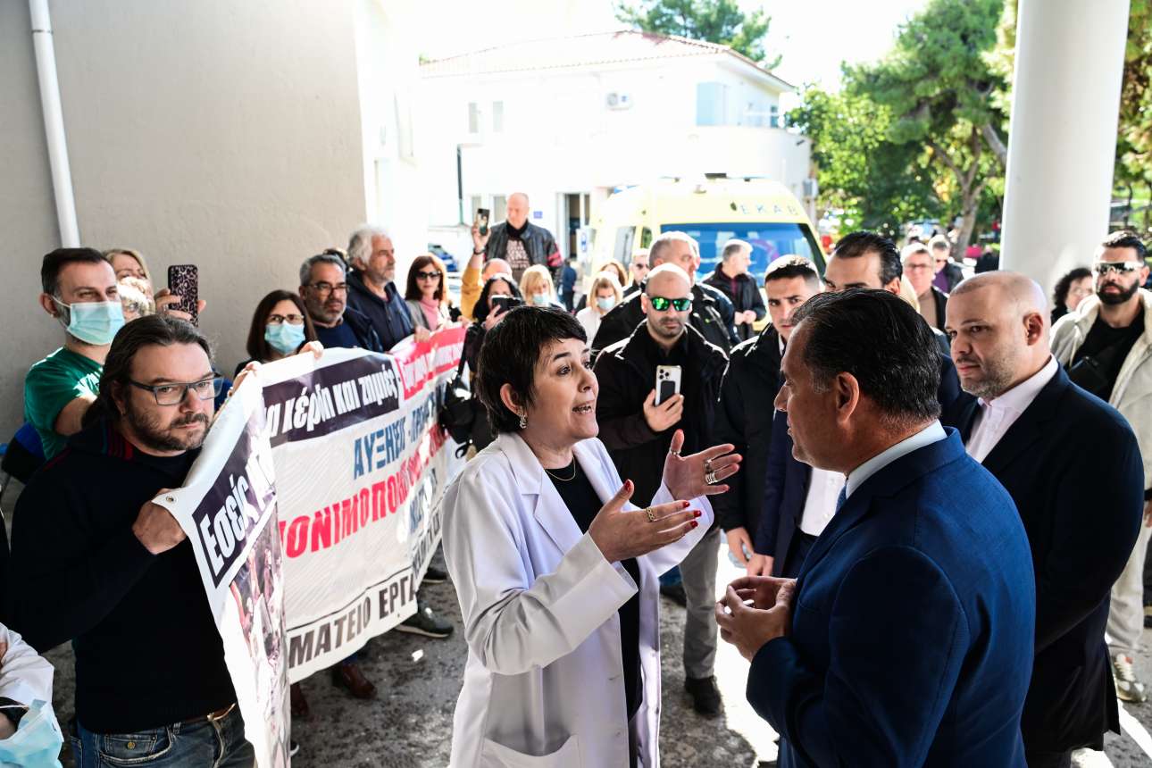 Nωρίτερα, ο κ. Γεωργιάδης επισκέφθηκε το αντικαρκινικό νοσοκομείο «Αγιος Σάββας» για τα εγκαίνια του νέου, ανακαινισμένου, τμήματος Ακτινοθεραπείας – δωρεά του Ομίλου AKTOR, όπου και πάλι δεν έλειψαν οι διαμαρτυρίες μερίδας των εργαζομένων με τους οποίους είχε φραστική αντιπαράθεση ο υπουργός.