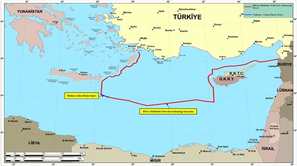 Οι περιοχές που καθορίζονται στις τρέχουσες δραστηριότητες έρευνας και γεώτρησης καθορίζονται σύμφωνα με τις επιστημονικές, τεχνικές απαιτήσεις και ανάγκες, σύμφωνα με την υφαλοκρηπίδα μας (Εικόνα-1), η οποία καθορίστηκε από τη Συμφωνία Υφαλοκρηπίδας που υπογράψαμε με την ΤΔΒΚ το 2011 και των οποίων τα σύνορα κοινοποιήθηκαν στον ΟΗΕ στις 18 Μαρτίου 2020. Σε αυτό το πλαίσιο, η περιοχή που απαιτείται για το σκάφος σεισμικής έρευνας Oruç Reis στα νοτιοδυτικά του κόλπου Mersin (Εικόνα-2) δημοσιεύτηκε με την ανακοίνωση της NAVTEX.