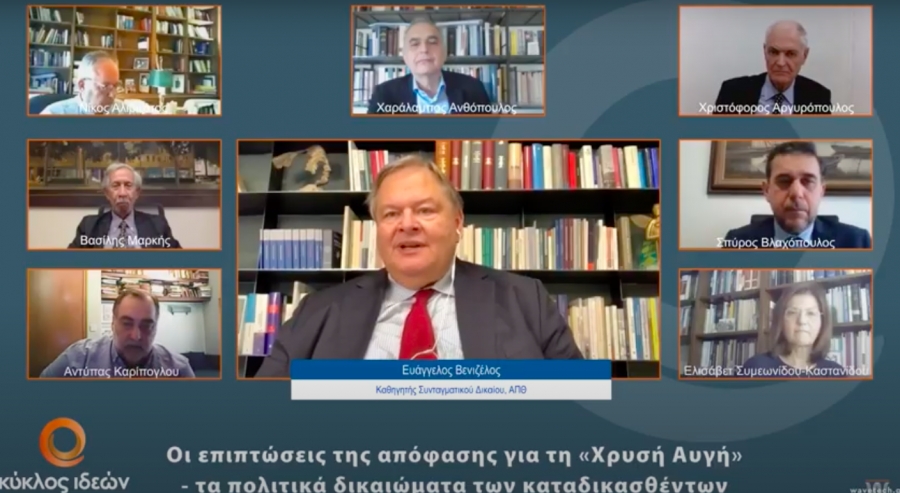 «Οι επιπτώσεις της απόφασης για τη ‘Χρυσή Αυγή’ – τα πολιτικά δικαιώματα των καταδικασθέντων», ήταν το θέμα διαδικτυακής δημόσιας συζήτησης, που διοργάνωσε τη Δευτέρα ο Κύκλος Ιδεών.