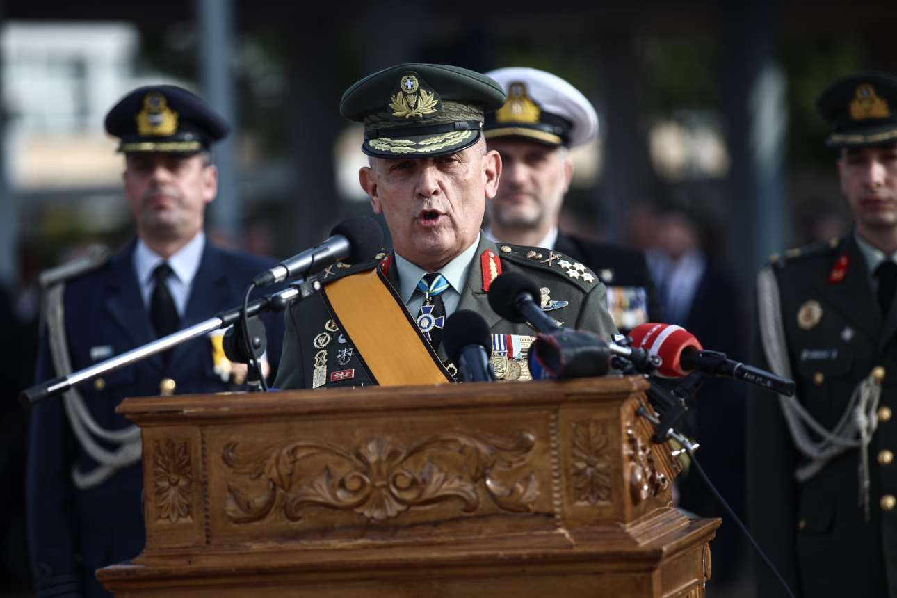 «Σε μια περιοχή όπου η γεωγραφία παράγει Ιστορία, δεν είναι ανεκτή ουδεμία διολίσθηση σε οτιδήποτε αφορά στην εθνική μας κυριαρχία, στην εδαφική ακεραιότητα και ανεξαρτησία της χώρας.», υπογράμμισε από την πλευρά του ο (εικονιζόμενος επάνω) νέος Α/ΓΕΕΘΑ Δημήτρης Χούπης, για να προσθέσει αναφορικά με την ανάληψη των καθηκόντων του: