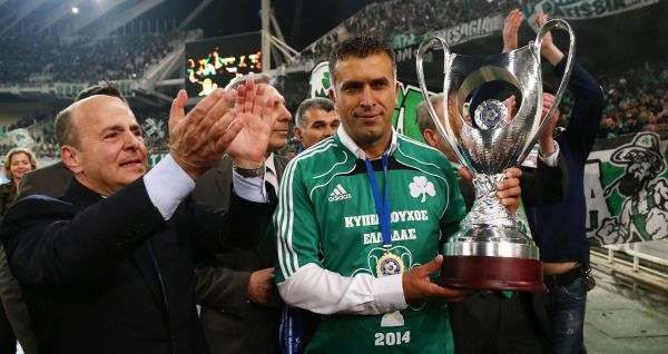 Ανοιξη 2013, ο Ανασταίου με το Κύπελλο Ελλάδος και τον Γ. Αλαφούζο να χειροκροτεί