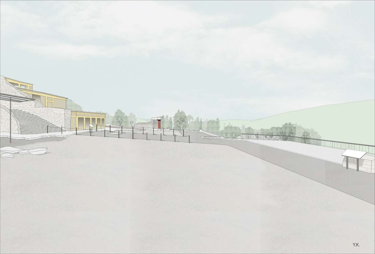 Η εγκριθείσα αρχιτεκτονική μελέτη αφορά στη διαμόρφωση νέων πορειών από τη Δυτική Αυλή προς το «Θέατρο», στην Κεντρική Αυλή, καθώς και στα «Μέγαρα Βασιλέως και Βασίλισσας» για την περιήγηση όλων των επισκεπτών. Η νέα πορεία στην Κεντρική Αυλή επιτρέπει την περιήγηση των ΑμεΑ καθώς και την πρόσβασή τους στους γύρω χώρους, με τον περιορισμό της κίνησης των λοιπών επισκεπτών, χωρίς, όμως, να αποκλείεται η ελεύθερη περιήγησή τους. Η πρόσβαση στην περιοχή των «Μεγάρων Βασιλέως και Βασίλισσας» γίνεται μέσω κλίμακας νότια του «Μεγάρου Βασίλισσας». Στόχος της διαμόρφωσης νέας πορείας περιήγησης στο «Μέγαρο Βασιλέως», είναι ο χώρος αυτός να καταστεί μερικώς επισκέψιμος, και ταυτόχρονα, να προστατευθούν τα αρχαία δάπεδα. Επεμβάσεις προβλέπονται και σε επίπεδο ανακατασκευής δαπέδων, στα οποία περιλαμβάνονται το δάπεδο της περιοχής υποδοχής και εισόδου στον αρχαιολογικό χώρο, καθώς και οι διάδρομοι της κεντρικής Αυλής, νότια της δυτικής Αυλής, ανατολικά του «Θεάτρου» και της εξόδου από το Ανάκτορο.