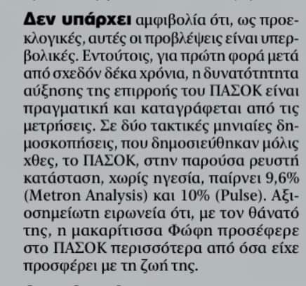 «Με τον θάνατό της, η μακαρίτισσα Φώφη προσέφερε στο ΠΑΣΟΚ περισσότερα από όσα είχε προσφέρει με τη ζωή της» έγραψε μεταξύ άλλων ο αρθρογράφος προκαλώντας την οργή στελεχών του ΚΙΝΑΛ και όχι μόνο.