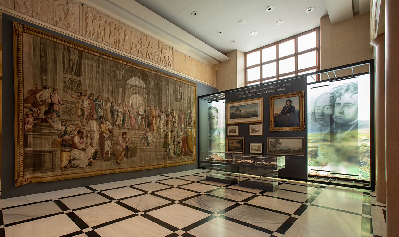 Στο Περιστύλιο έχει στηθεί ο ιδεολογικός καμβάς της έκθεσης, το εννοιολογικό κάδρο της Επανάστασης, γεγονός πολυδιάστατο και πολυπρισματικό. Εκεί δίδεται το στίγμα του, όπως διαμορφώνεται από τους ξένους αρχαιολάτρες, αλλά και τους έλληνες λόγιους-κοινωνούς του ευρωπαϊκού διαφωτισμού, που με τη διδασκαλία τους διαδίδουν μηνύματα αφύπνισης του έθνους.