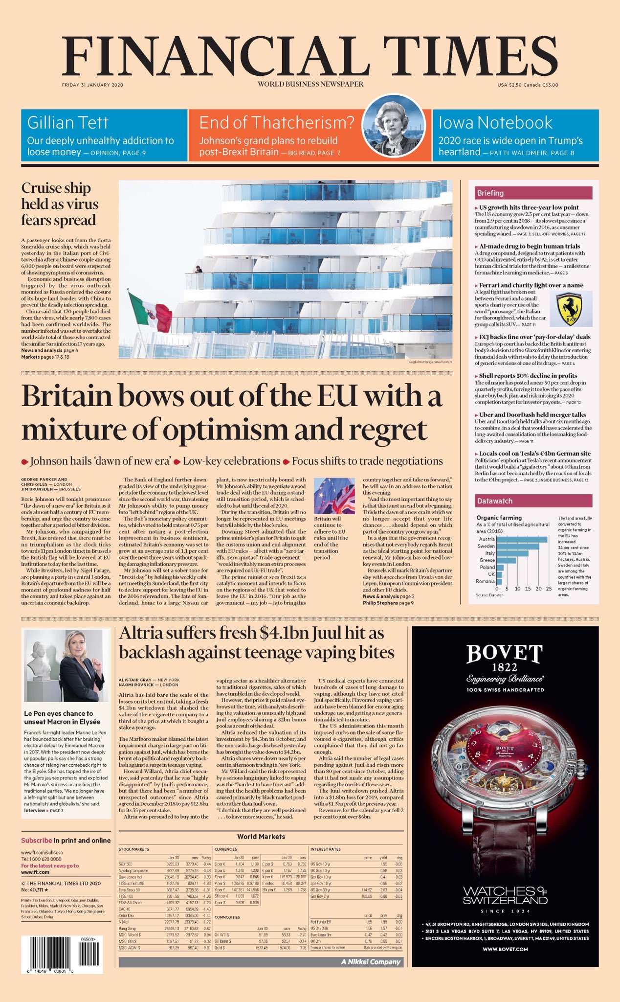 Για τους Financial Times «η Βρετανία κάνει υπόκλιση και εγκαταλείπει την ΕΕ με ένα μείγμα αισιοδοξίας και μεταμέλειας».