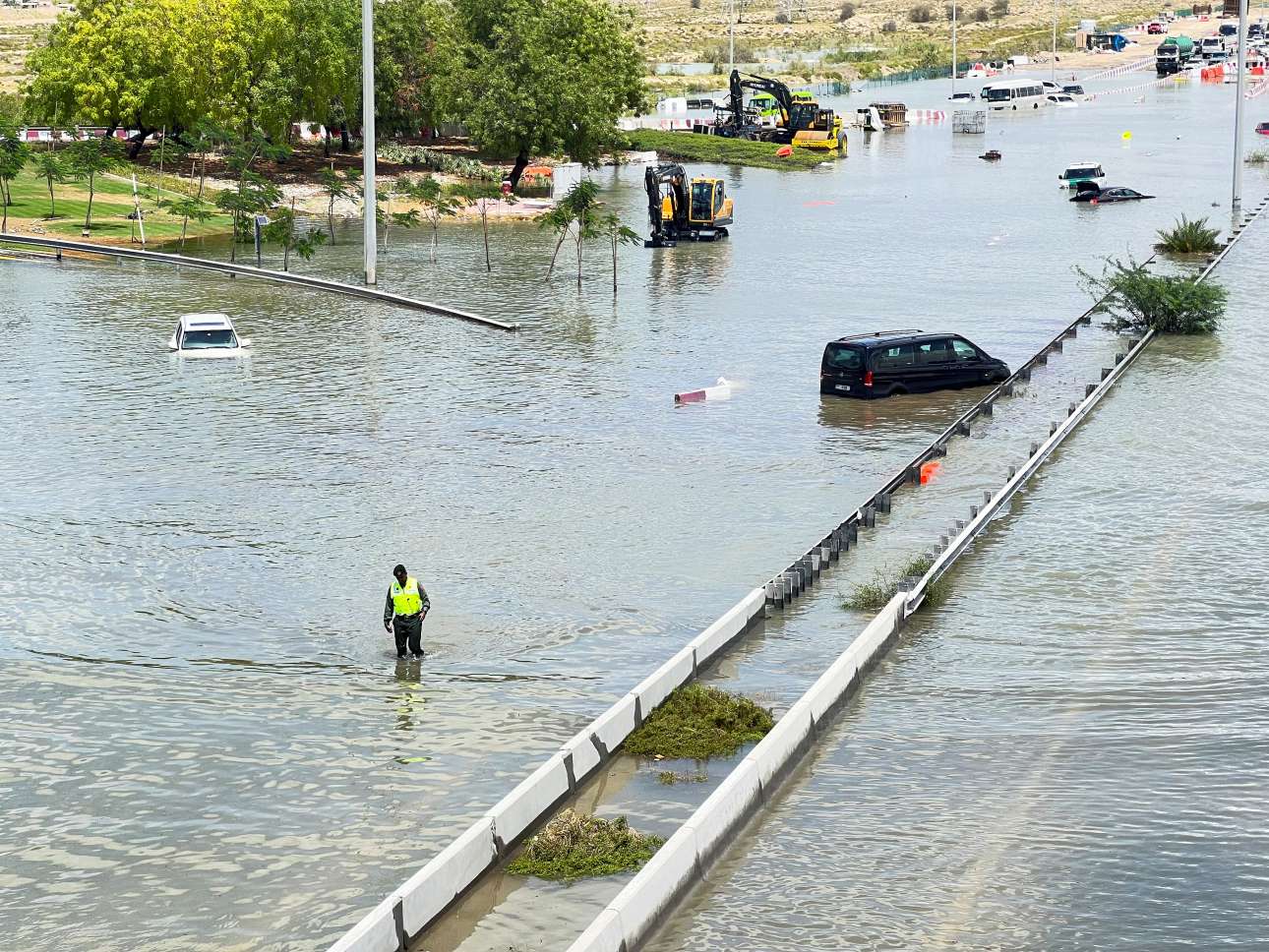 Σπίτια πλημμύρισαν και οχήματα εγκαταλείφθηκαν στους δρόμους σε όλο το Ντουμπάι, καθώς οι αρχές έστειλαν βυτιοφόρα στους δρόμους για να αντλήσουν το νερό. Πολλοί δρόμοι και άλλες περιοχές στερούνται υποδομών αποστράγγισης λόγω της έλλειψης τακτικών βροχοπτώσεων.