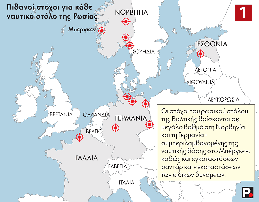 Οι στόχοι του ρωσικού Στόλου της Βαλτικής βρίσκονται κυρίως στη Νορβηγία και τη Γερμανία – συμπεριλαμβανομένης της ναυτικής βάσης στο Μπέργκεν, καθώς και εγκαταστάσεων ραντάρ και ειδικών δυνάμεων.