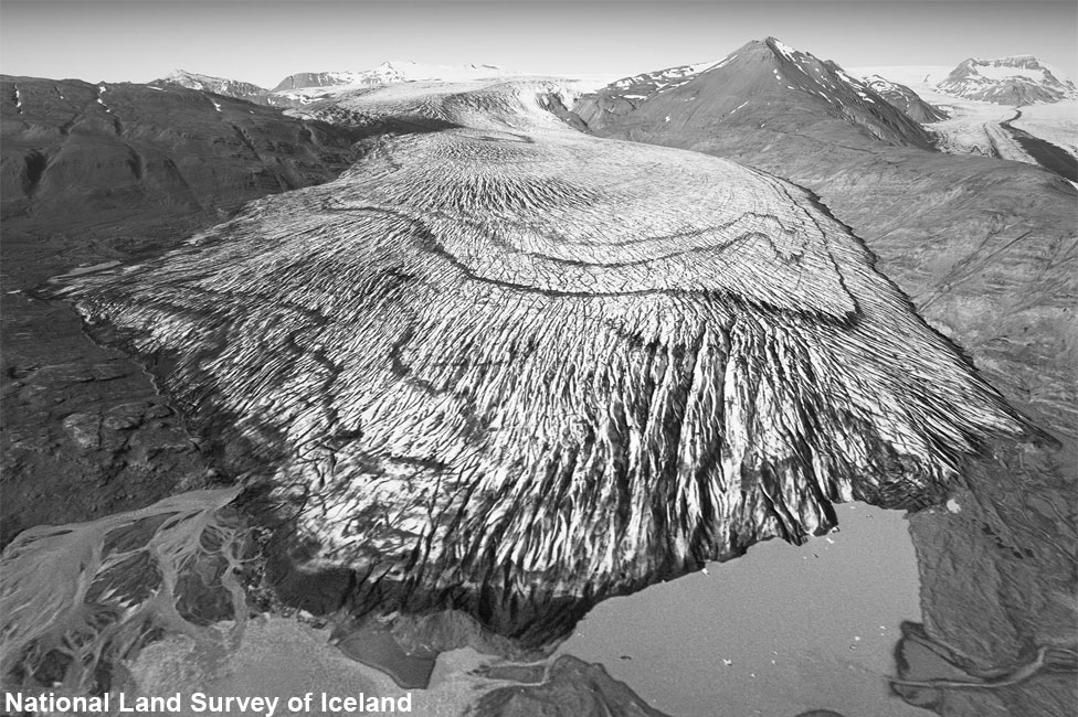 Οι σημερινές φωτογραφίες τραβήχτηκαν από drone, ενώ οι παλαιότερες είναι αεροφωτογραφίες με λήψεις που έγιναν από αεροσκάφος, στο πλαίσιο έρευνας που έκανε το Πανεπιστήμιο της Ισλανδίας σε συνεργασία με την Μετεωρολογική Υπηρεσία της χώρας.
