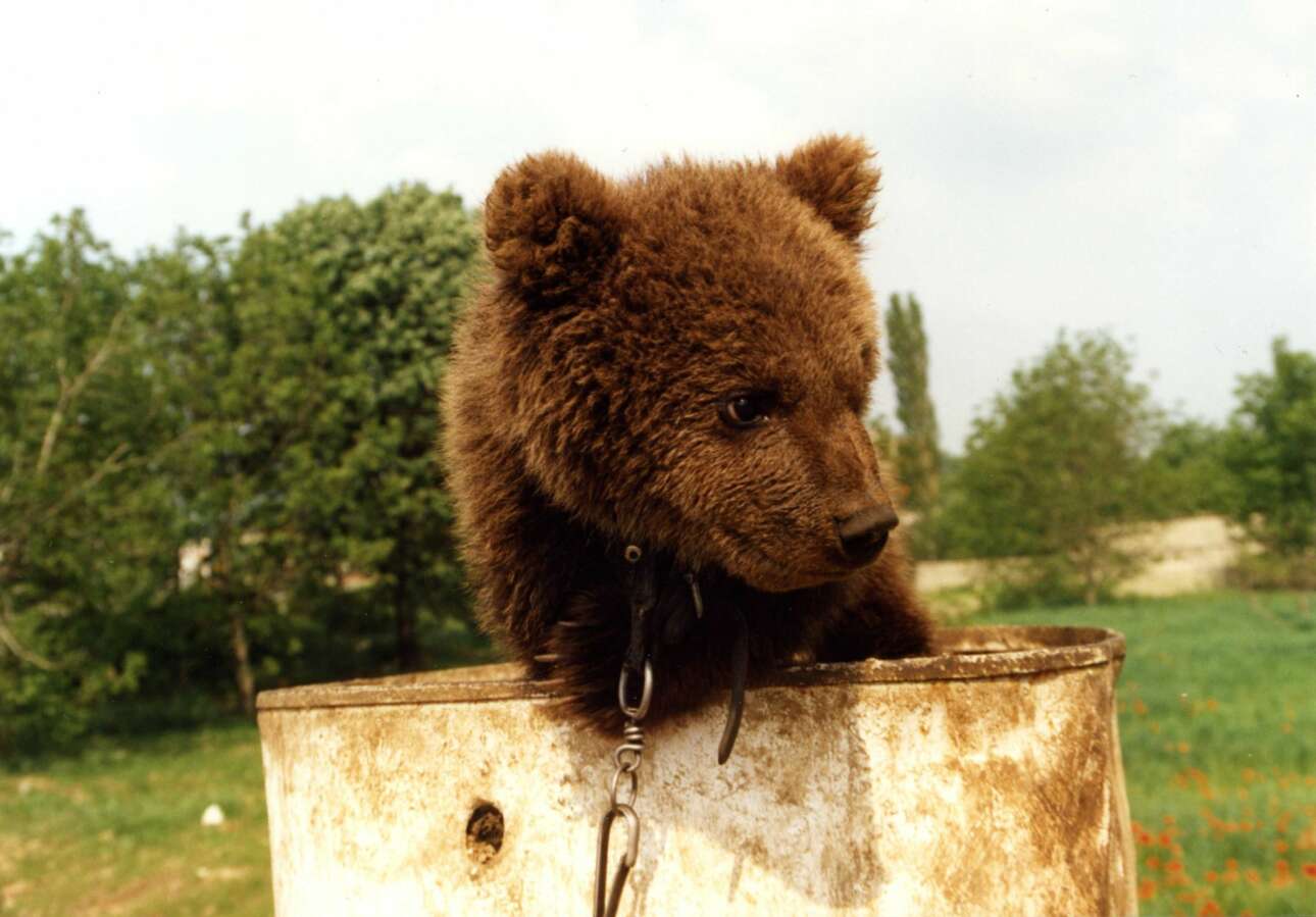 Ο Γιωργάκης κατασχέθηκε το 1995, σε ηλικία 1,5 έτους, από «αρκουδιάρη» στην Αλεξάνδρεια Ημαθίας. Ηταν έντονα κακοποιημένος (τρυπημένο χείλος, σπασμένα δόντια, παραμορφωμένη μουσούδα και φανερά υποσιτισμένος) από τον άνθρωπο που τον κρατούσε αιχμάλωτο. Υστερα από δύο χρόνια εντατικής περίθαλψης και φροντίδας στον κτηνιατρικό σταθμό, ο Γιωργάκης μεταφέρθηκε στο Κέντρο Προστασίας Αρκούδας.