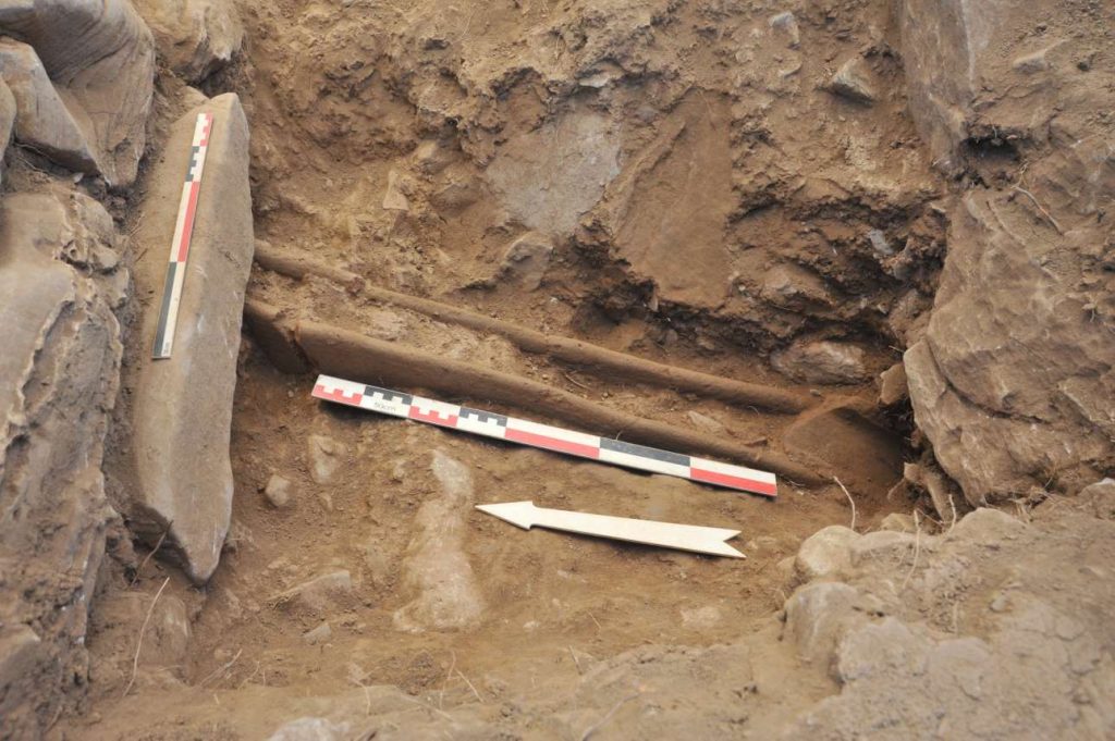 Η φετινή ανασκαφή έδειξε ότι η πρόσβαση προς την βόρεια είσοδο (φωτογραφία 2) γινόταν ήδη από τα παλαιοανακτορικά χρόνια (περί το 1900 π.Χ.) με μία ράμπα, η οποία κατέληγε σε ισχυρό αναλημματικό τοίχο και η οποία στη συνέχεια επιστρώθηκε άλλες δύο φορές με πλάκες κατά την περίοδο των νέων ανακτόρων (1700-1600 π.Χ.). Στον ισχυρό αναλημματικό τοίχο δημιουργήθηκε λοξός, τελετουργικός διάδρομος, που έφθανε στην βόρεια είσοδο. Η χρήση του από την περίοδο των πρώτων ανακτόρων επιβεβαιώνεται από κεραμεική και ιδιαίτερα από τα κύπελλα του τύπου της ΜΜ περιόδου (περί το 1800 π.Χ.), τα οποία είναι χαρακτηριστικά της κνωσιακής αγγειοπλαστικής.