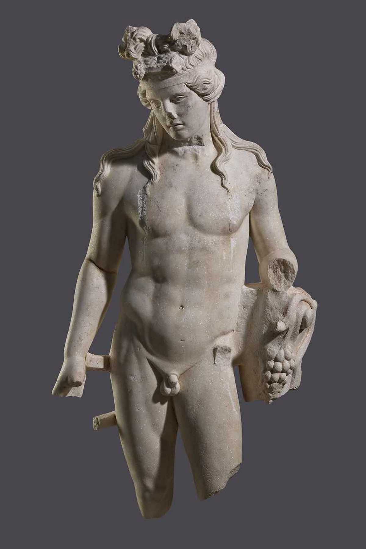 Εικόνα 3: Μαρμάρινο άγαλμα του Διονύσου από τη Θεσσαλονίκη. Ο θεός εικονίζεται σε νεαρή ηλικία. 2ος αι. μ.Χ. (Αρχαιολογικό Μουσείο Θεσσαλονίκης)