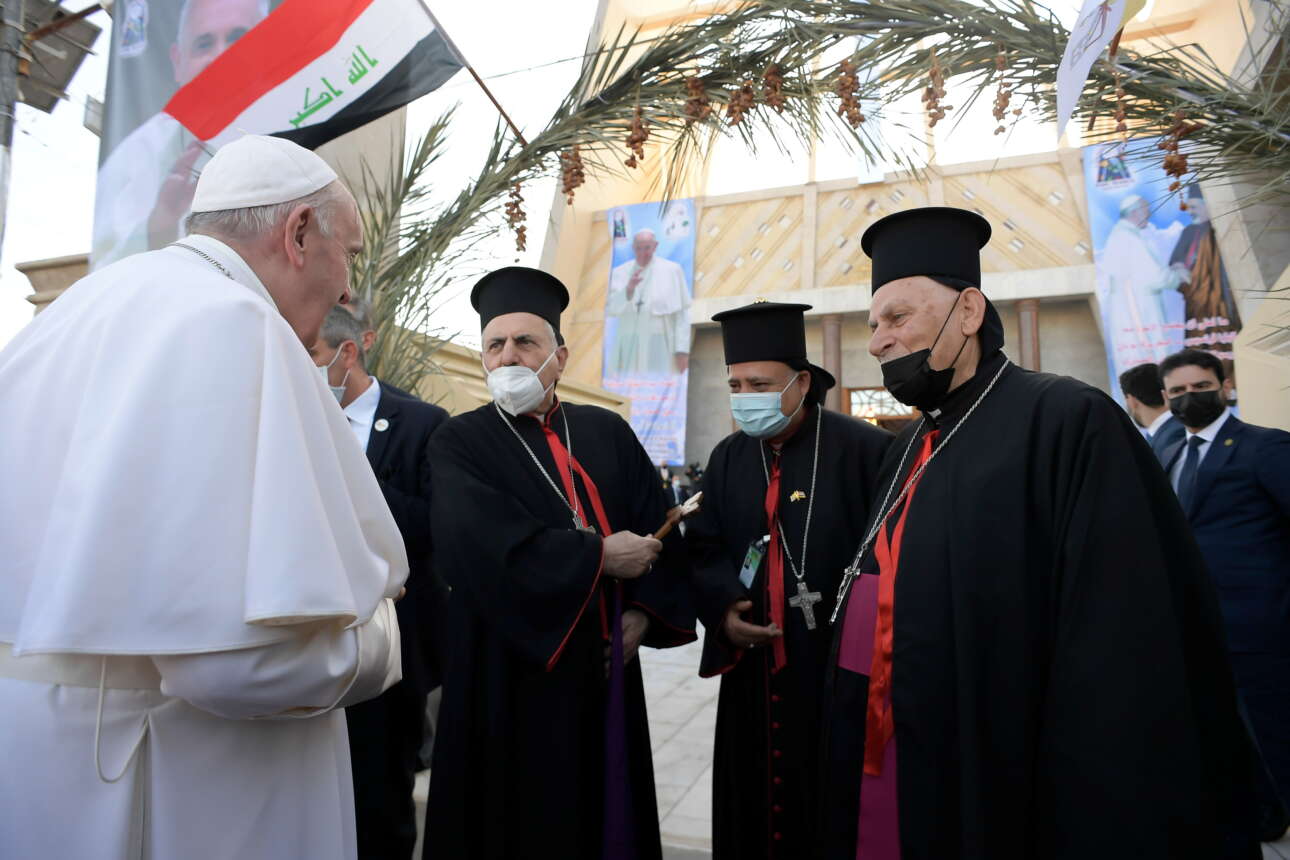 Υπό δρακόντεια μέτρα προστασίας και παρά την πανδημία έφτασε την Παρασκευή στο Ιράκ ο πάπας Φραγκίσκος, όπου θα υποστηρίξει μία από τις αρχαιότερες χριστιανικές κοινότητες του κόσμου, η οποία δοκιμάζεται σκληρά από τις συγκρούσεις και τις διώξεις.