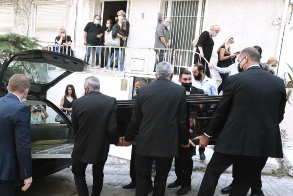 Την ώρα που έφευγε η νεκροφόρα, η Μαρίζα Κωχ είπε το δικό της αντίο ρίχνοντας κλαδιά βασιλικού.