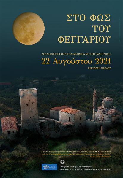 Για μία ακόμη, δύσκολη υπό συνθήκες πανδημίας χρονιά, οι Περιφερειακές και Ειδικές Περιφερειακές Υπηρεσίες της Γενικής Διεύθυνσης Αρχαιοτήτων και Πολιτιστικής Κληρονομιάς και το προσωπικό τους συνεχίζουν τον επιτυχή θεσμό της Πανσελήνου του Αυγούστου. Σας προσκαλούμε όλους στους αρχαιολογικούς χώρους και τα μουσεία, την ωραιότερη νύχτα του ελληνικού καλοκαιριού, την Κυριακή 22 Αυγούστου.